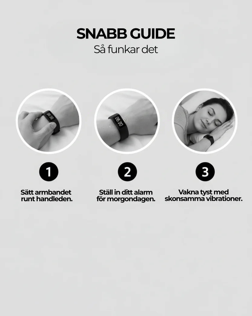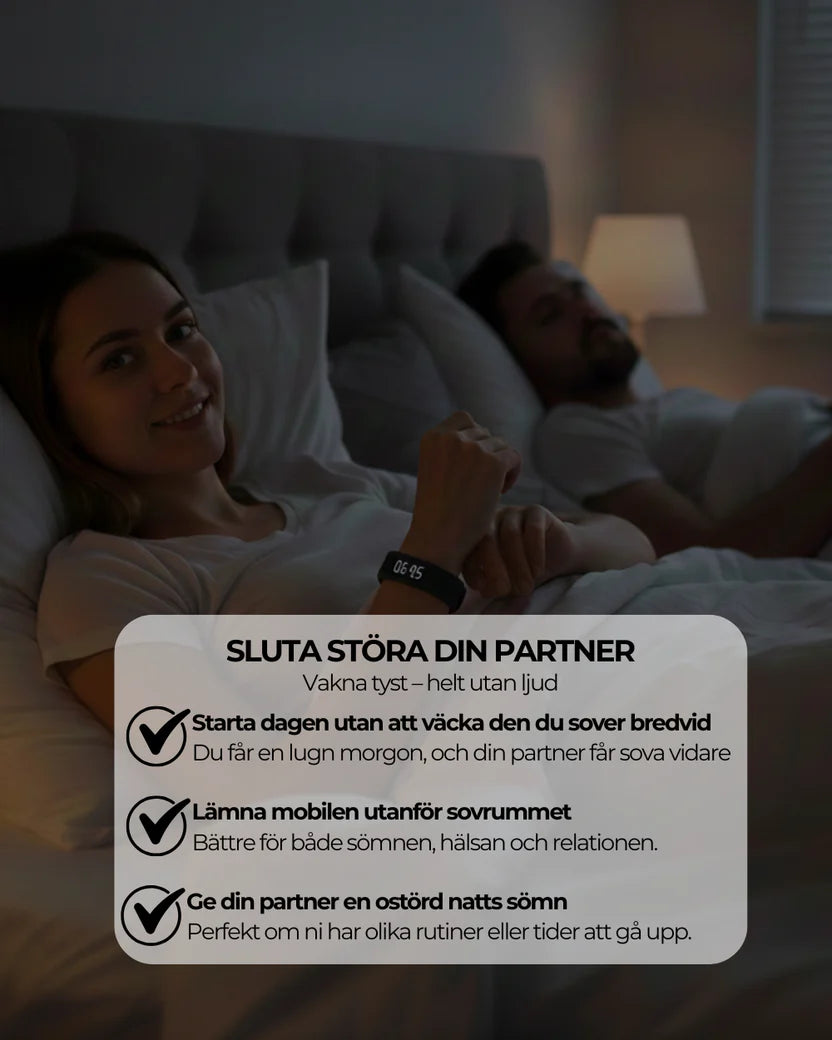 Upplev en lugn och stressfri morgon med ett innovativt armband som väcker dig med mjuka vibrationer. Perfekt för den som vill starta dagen utvilad utan att störa andra.